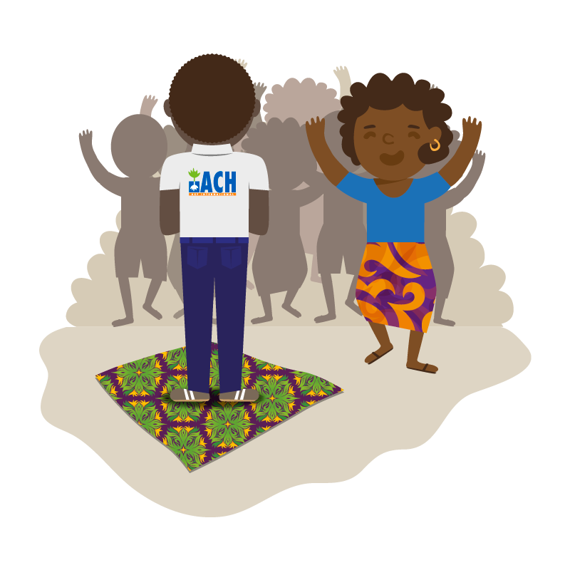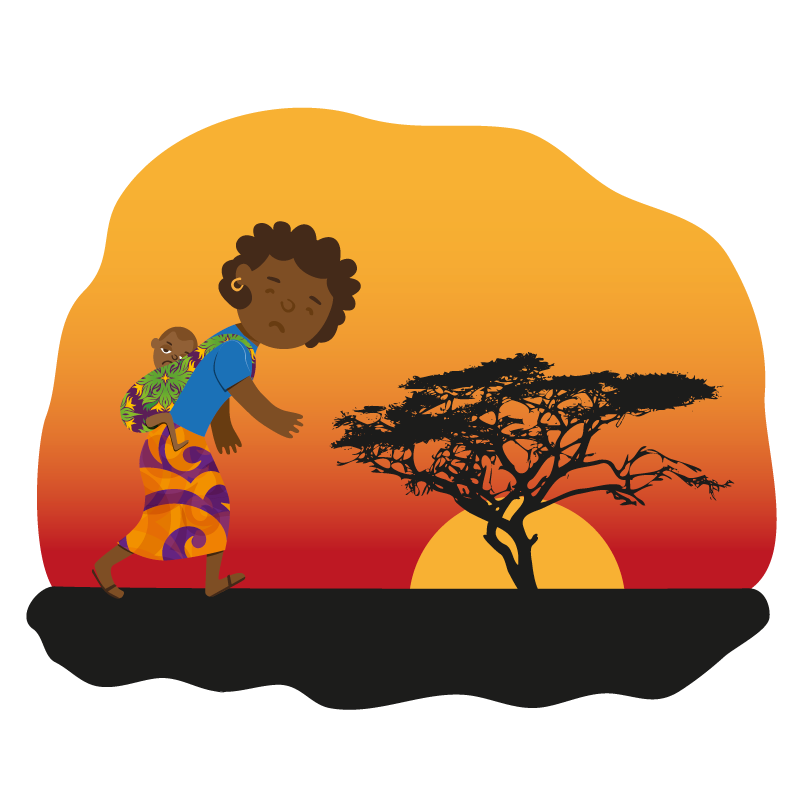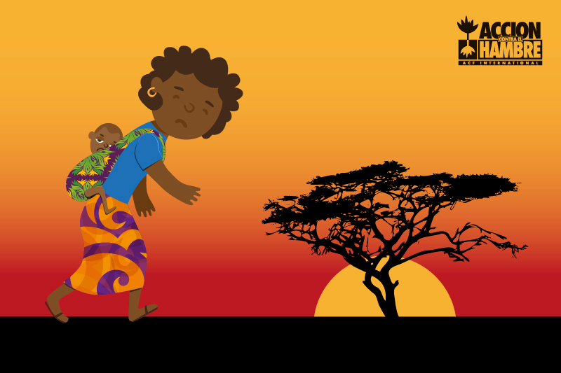 Ilustraciones sencillas para la landing creada con motivo del día de la madre 2015, recreando la historia que vivió en Angola Amador Gómez, Director Técnico de Acción contra el Hambre.